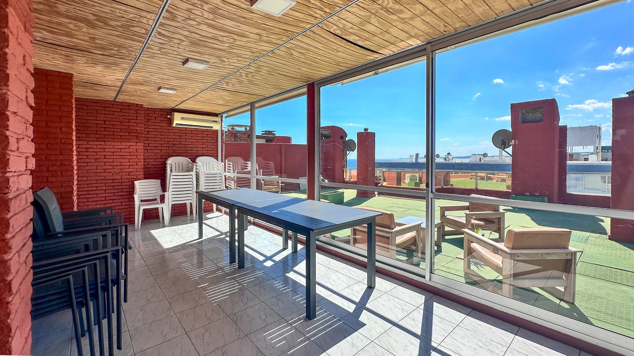 Equipado con aires acondicionados, calefactores de pared, y placares en todos los dormitorios y en la cocina, este apartamento está diseñado para tu confort. Además, podrás disfrutar de una refrescante piscina exterior, perfecta para esos días soleados, barbacoa de uso común de gran dimensión, sala fitness y recreativa, cancha de paleta y solarium en terraza con vista al mar!