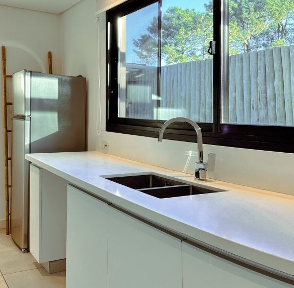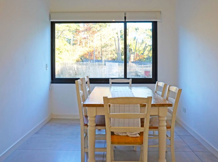 116m2 en una sola planta, distribuidos en: 3 dormitorios (principal en suite), 2 baños, toilette, cocina definida con lavadero, living integrado al jardín con estufa a leña de alto rendimiento, comedor, deck, parrillero, piscina y estacionamiento, además de aire acondicionado en cada ambiente y luz natural en toda la casa gracias a su orientación y amplios ventanales..